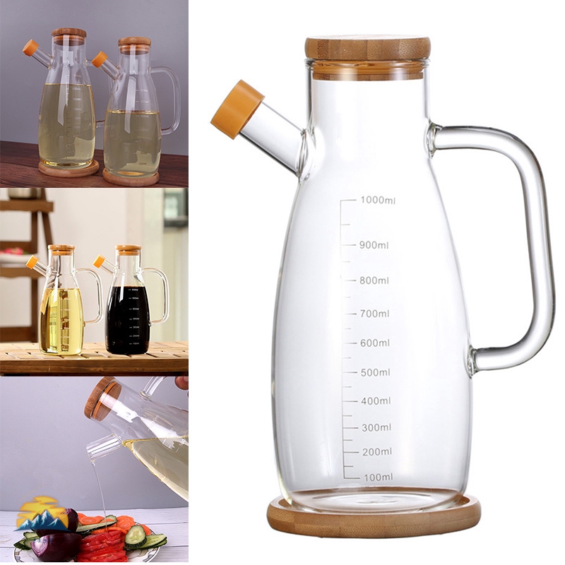 Olive Oil Dispenser Glass Bottle Cruet Lead Free With Bamboo Lid Vinegar Bottles For Kitchen Cooking Container Shopee Indonesia
